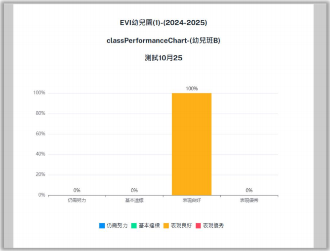 2. 在「百分比圖」介面,「類別」下拉可選擇班級表現圖表還是全級表現圖表